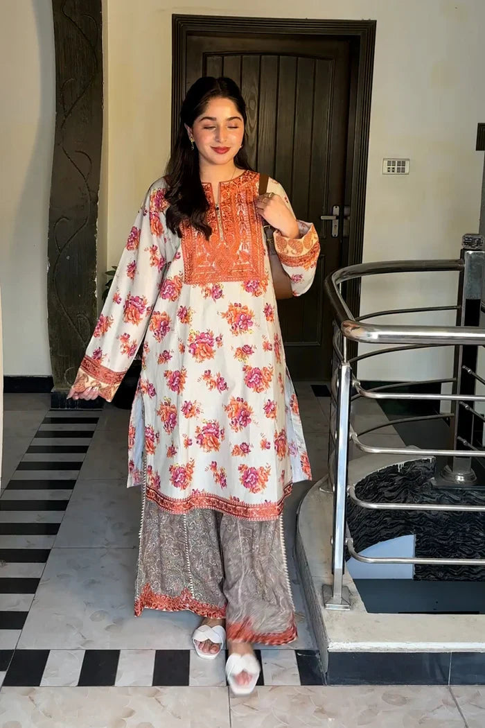 Step into contemporary elegance with this striking 2-piece pret ensemble, crafted from soft printed lawn...