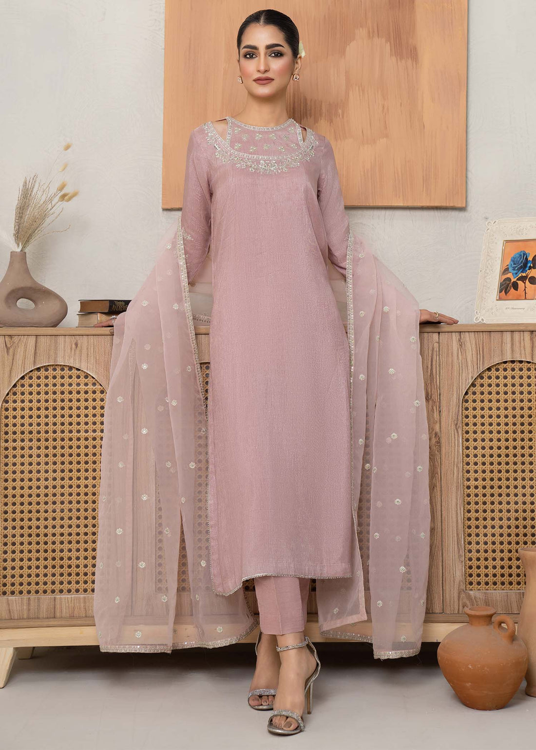 Description Step into refined elegance with this pastel embroidered lawn outfit, thoughtfully designed to bring...