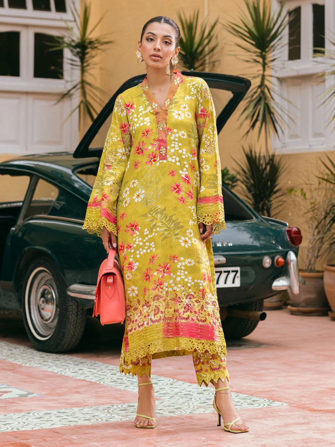 Product Description: Embroidered And Printed Silk Shirt With Hand Embellished Neckline Embroidered Chiffon Dupatta Printed...