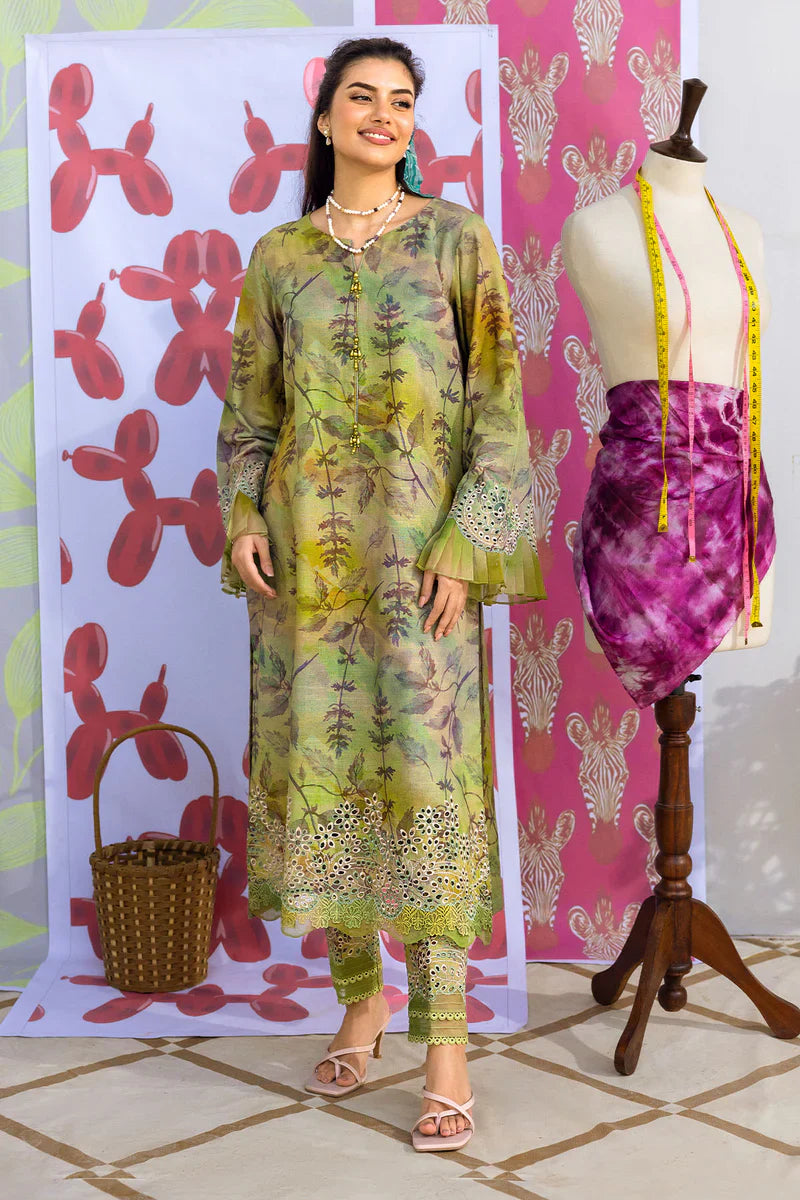Product Description: Printed And Embroidered Chiffon Shirt Embroidered Stitched Chiffon Dupatta Dyed Rawsilk Trouser And...