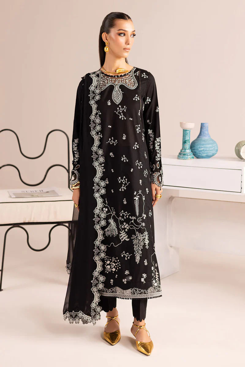 Embroidered Laser Cut Lawn Shirt Paired With Dyed Cotton Trouser