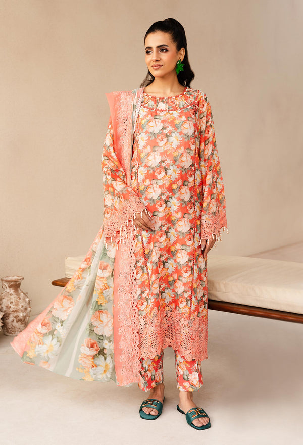 Digitally Printed & Schifllii Embroidered Lawn Back ?˜0.8 MTR