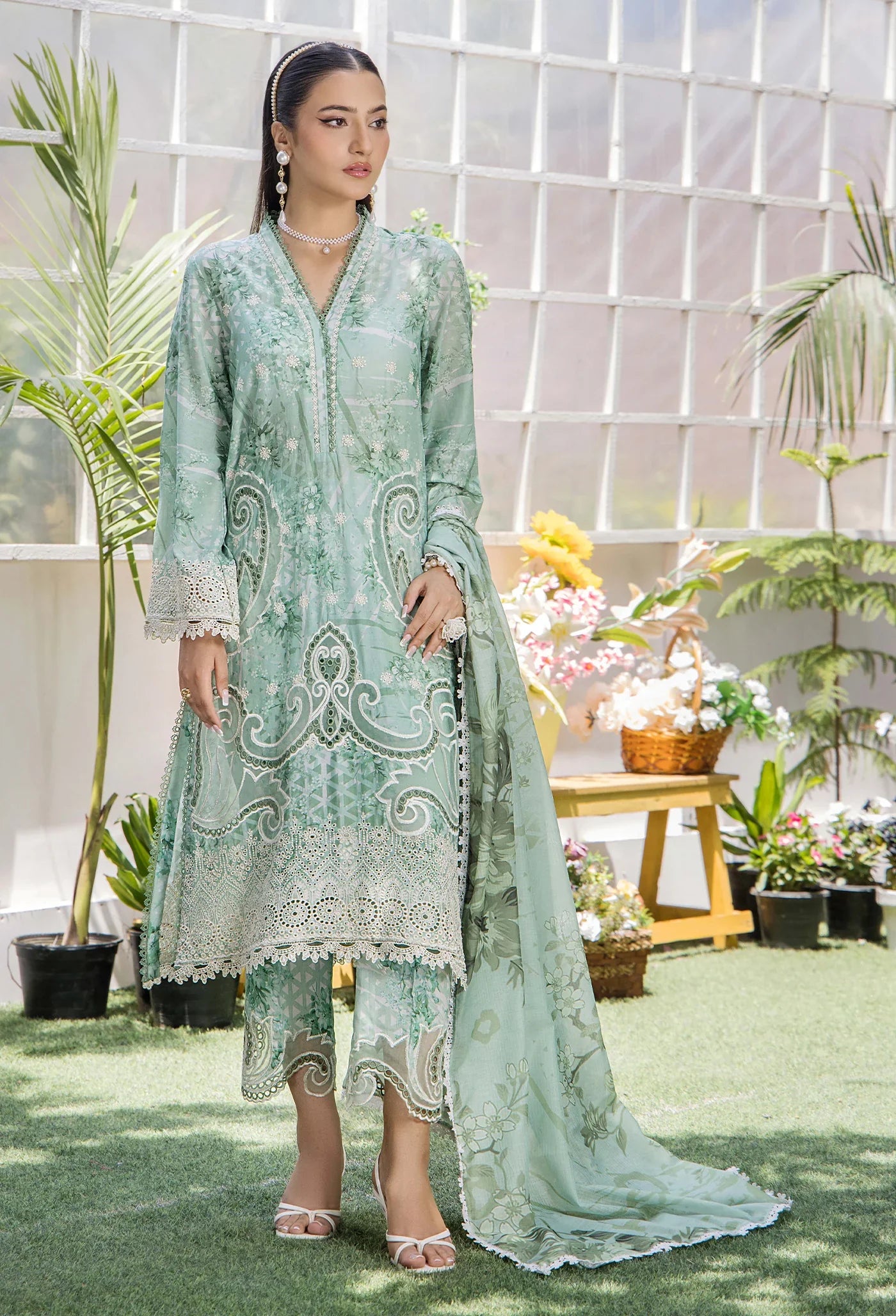 - Digitally Printed & Schiffli Embroidered Lawn Back 1-pc