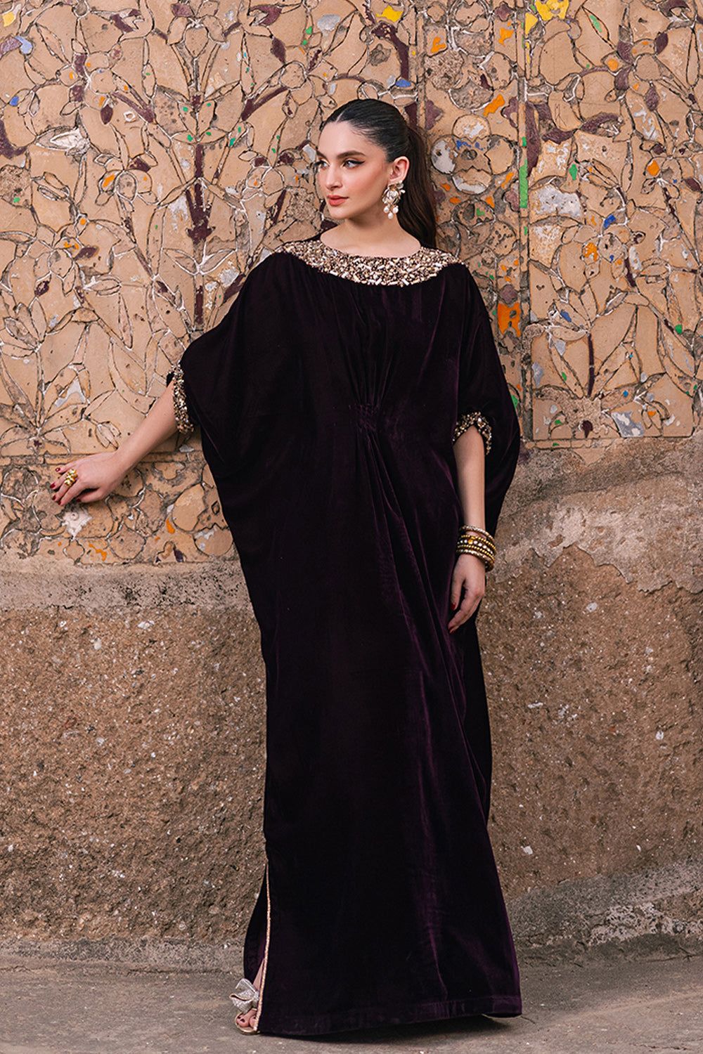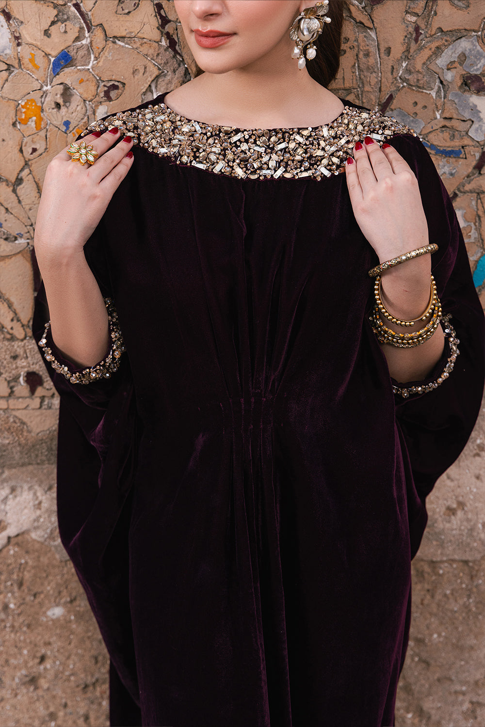 Introducing?˜Opulent Rouge?˜from our?˜Vogue CollectionŸ?¦Ÿ?�a luxurious velvet ensemble in rich burgundy. With a hand-embellished neckline and paired with raw silk straight pants, this outfit radiates sophistication and timeless elegance. Perfect for those who appreciate refined luxury.