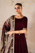 Elevate your wardrobe with this stunning three-piece ensemble featuring exquisite craftsmanship. The frock showcases luxurious embroidered velvet detailing on the neckline and sleeve borders, creating an elegant focal point. Paired with comfortable grip trousers for all-day wear, this set includes a beautifully digital-printed silk dupatta that complements the overall aesthetic. Complete with coordinating accessories, this collection brings together premium fabrics and thoughtful design for a polished, sophisticated look.