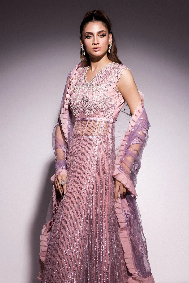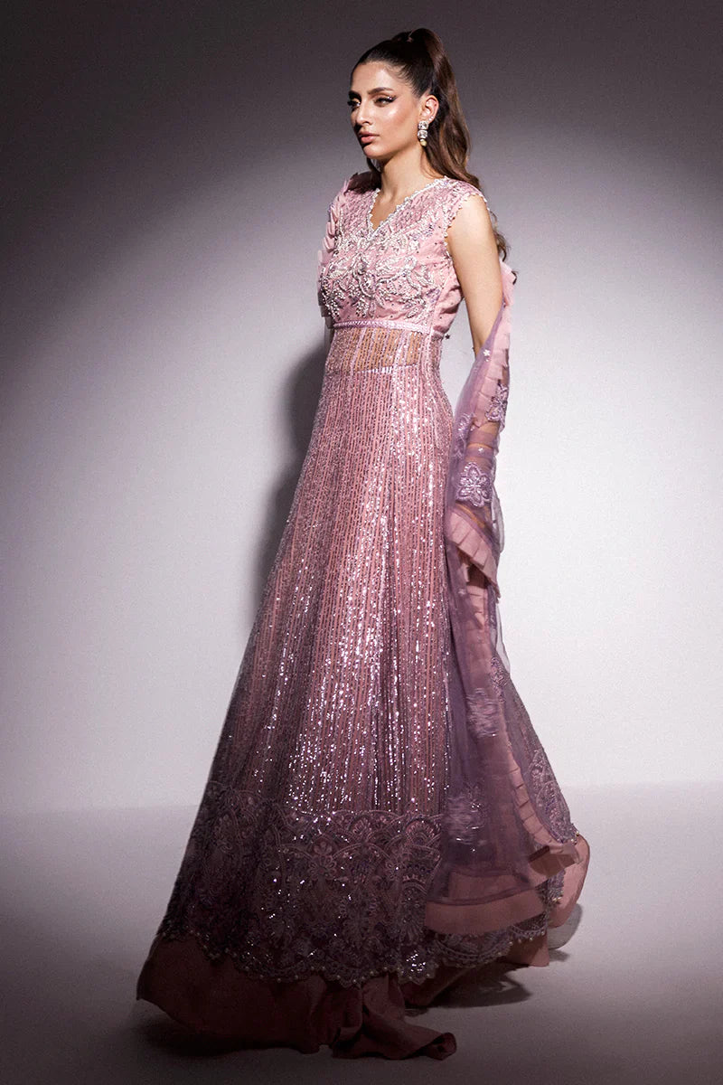 -Embroidered and sequinned sleeves (net Embroidered, sequinned and pearl embellished front & back daman border (organza)