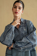 Woven in soft charcoal grey chambray, Ashra flows like a gentle mid-season breeze. Birds and floral motifs, stitched in shades of navy blue and ivory, drift across the shirt like whispered secrets of nature, while tiny mirror accents glimmer like dew at first light. A crisp collar and cool cuff sleeves lend refined elegance, paired with matching trousers adorned with delicate embroidered details. Ashra is a serene ode to artistry and grace—where nature’s quiet poetry meets the soft rhythm of every stitch.