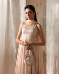 Enhanced with delicate threadwork and ornamental detailing, Anouk is a testament to the impeccable FS aesthetic. Cut from opulent shamose silk, the warm pearl gown featires lavishly adorned pearl, cutdana and stone motifs that dazzle with brilliance. Paired with an embellished net dupatta, this set will make you stand out at every affair