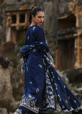 Yara in Navy Blue from our Lawnkari '25 Collection. A cutwork embroidered cotton lawn 3-piece outfit paired with dyed voile embroidered dupatta. Ÿ?¦Ÿ??