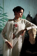 A vision of timeless elegance, this White 3-piece pret is beautifully crafted in organza with intricate artistry. The straight-cut, front-open shirt is adorned with decorative fabric-covered buttons and delicate embroidered edging for a sophisticated finish. Its full-length silhouette features geometric mirror work jaal embroidery in thread and tilla, highlighted with sequins for a subtle shimmer. Shoulder, mid-length, and hem motifs are thoughtfully placed to create a continuous, balanced design. Full-length sheer net sleeves carry jaal embroidery with mirror work detailing, ending in scalloped embroidered lace borders with sequin accents. The cuffs add extra refinement with embroidered highlights, while subtle lace edging completes the shirt hem gracefully. Paired with fully embroidered straight trousers that mirror the shirt’s elegance, ensuring a cohesive statement look. The Bareeze Net dupatta, finished with four-side embroidered lace, lends an ethereal softness, making this ensemble a masterpiece of understated luxury.