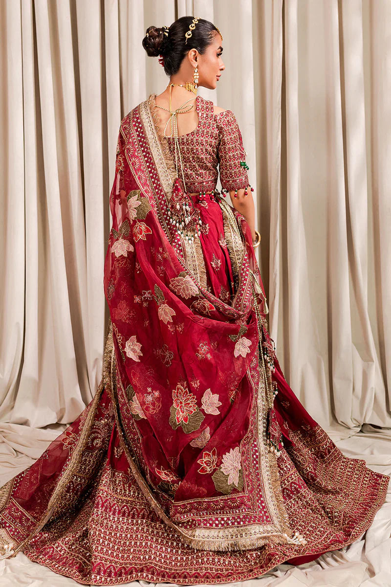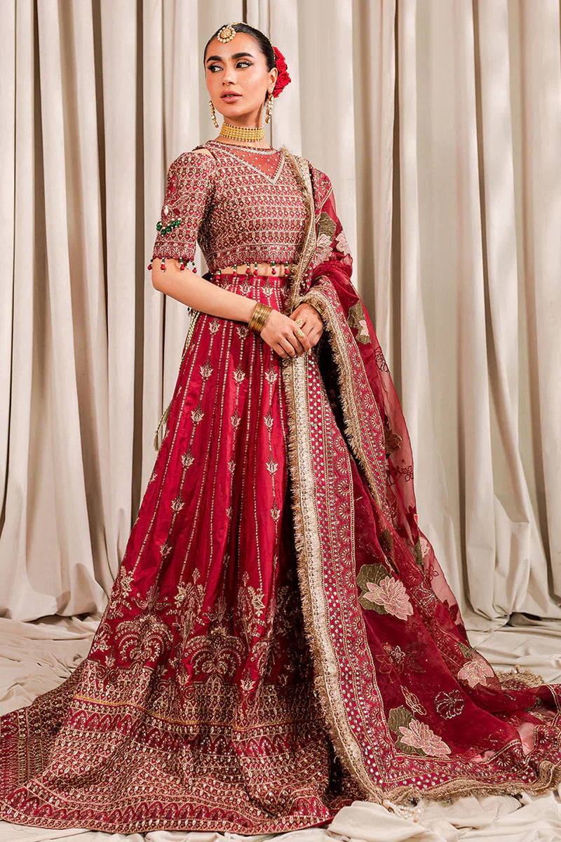 - 3 Piece Ready-To-Wear Embroidered Panels Taffeta Silk Lehanga With Embroidered Taffeta Silk Blouse And Paired With Embroidered Organza Dupatta