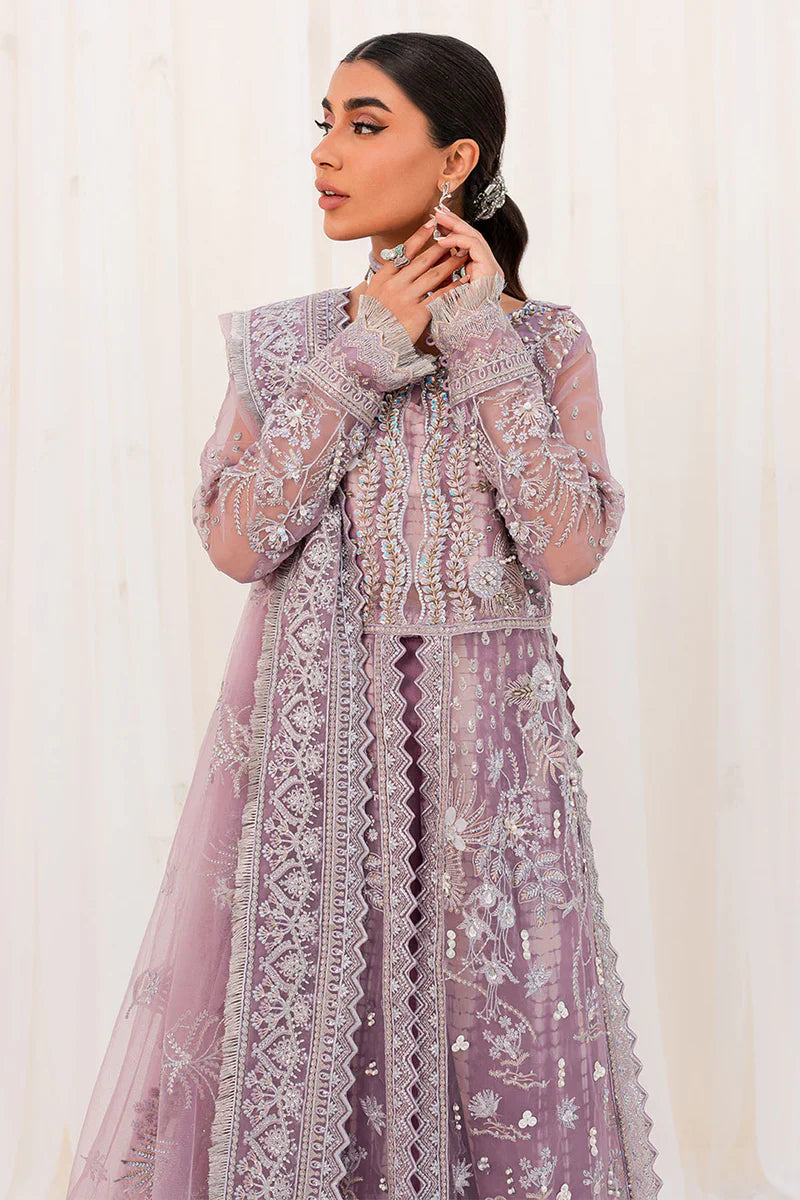 - 4 Piece Ready-To-Wear Embroidered & Hand-Embellished Organza Front Open Shirt With Tie & Dye Embroidered Raw Silk Trouser Paired With Embroidered Net Dupatta And Inner Cropped Lining.