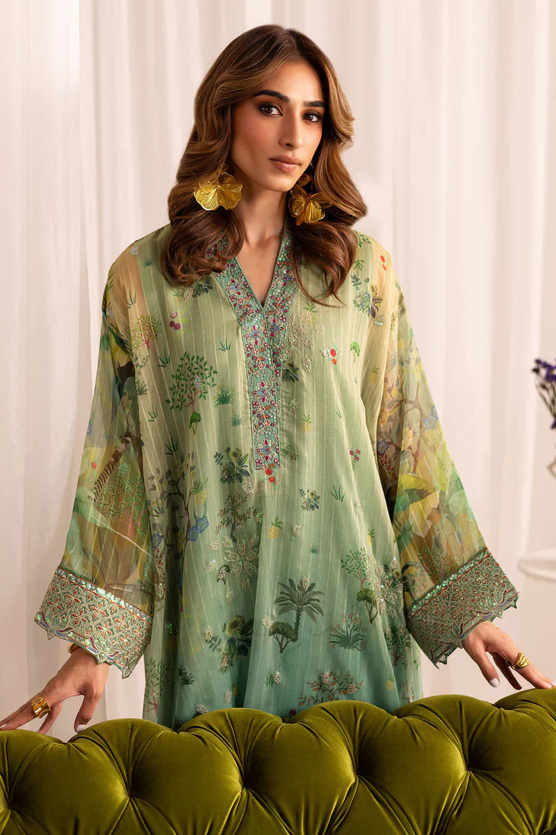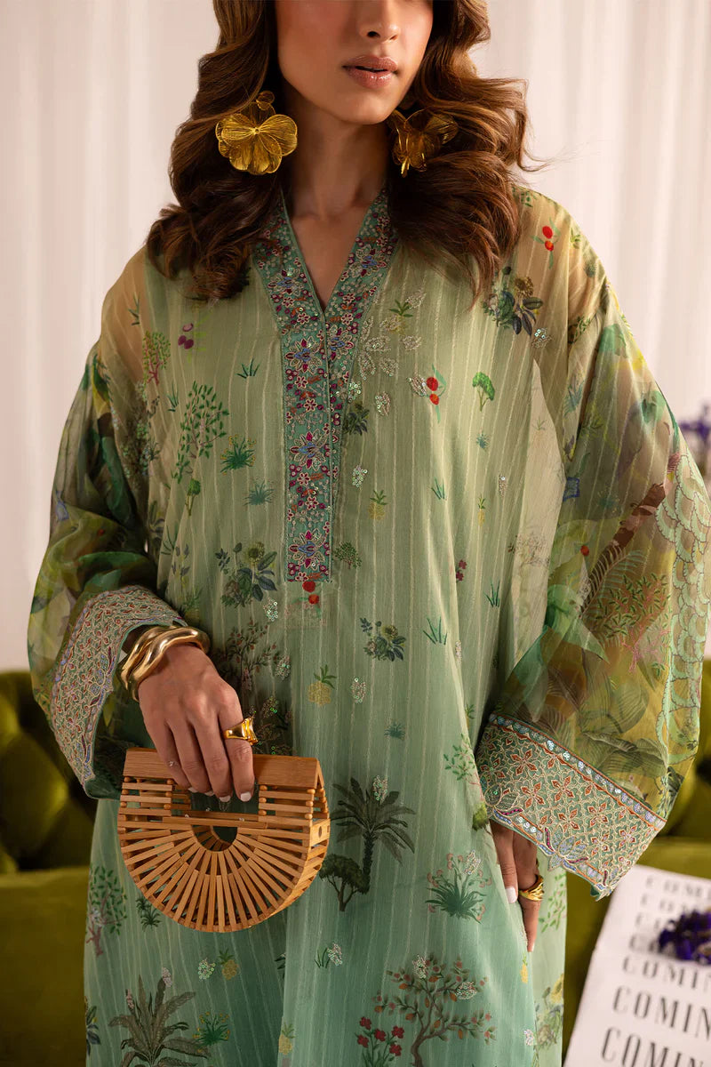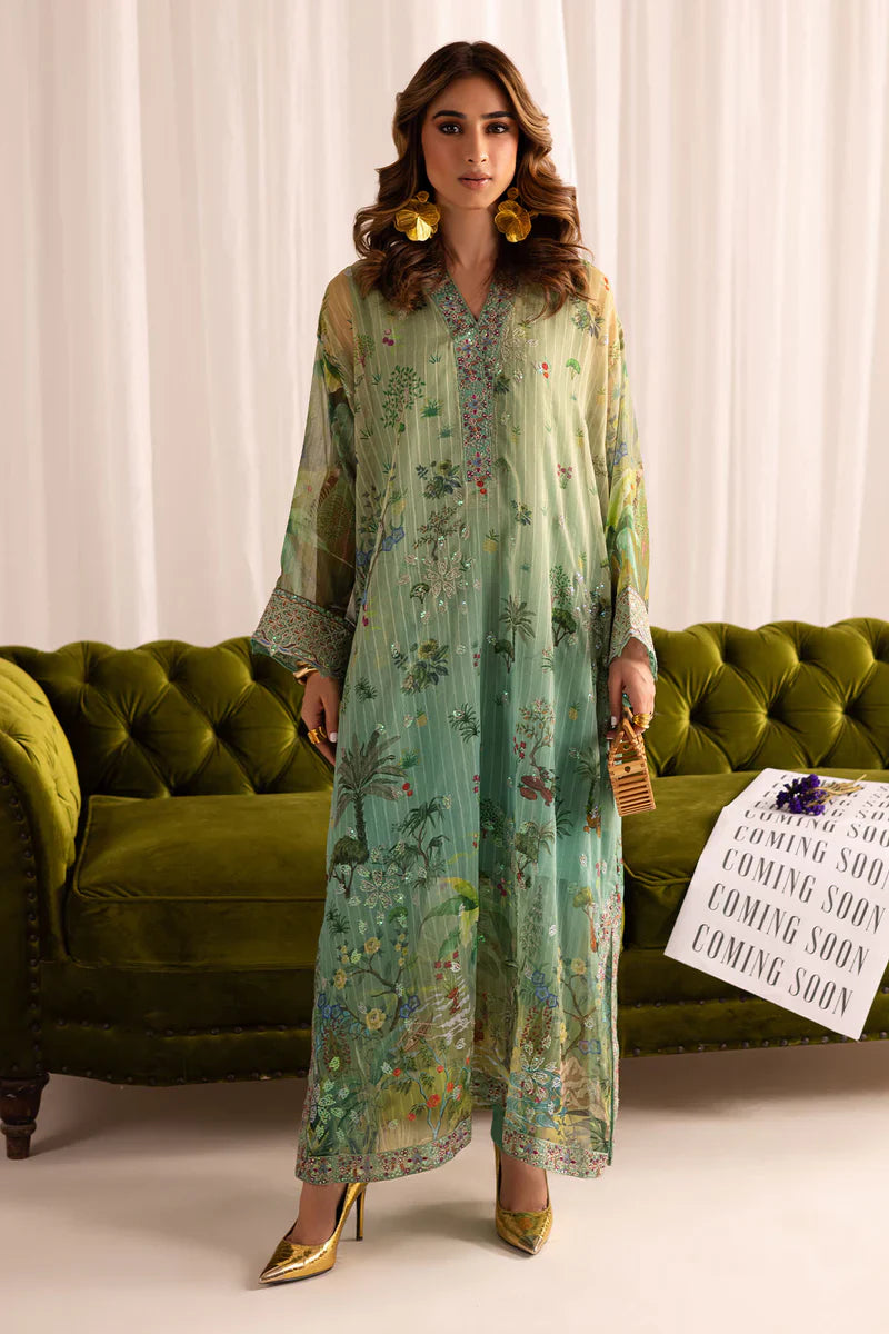 - Embroidered And Printed Jacquard Chiffon Kaftaan With Inner