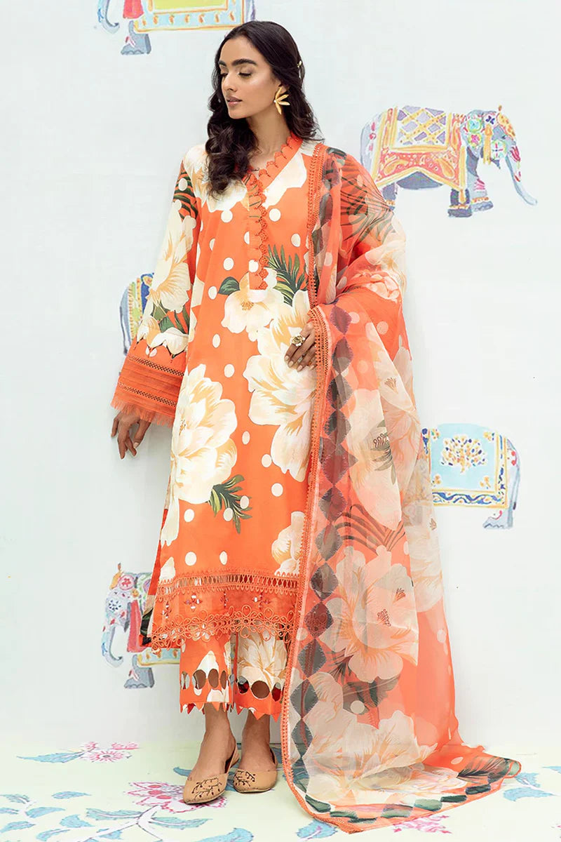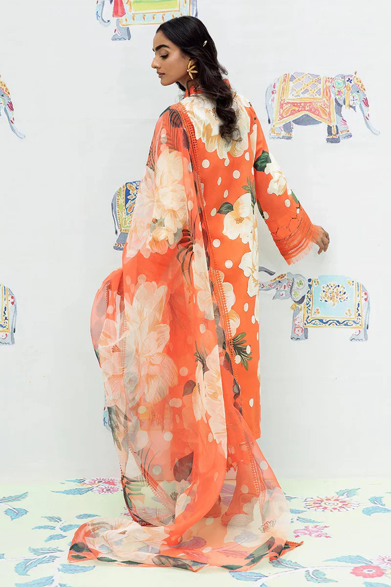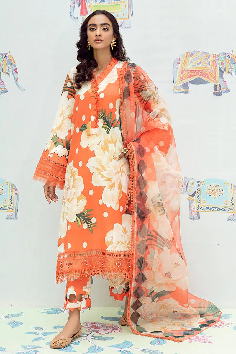 - 3-Piece RTW Printed Lawn Shirt Paired With Printed Organza Dupatta And Printed Cotton Trousers