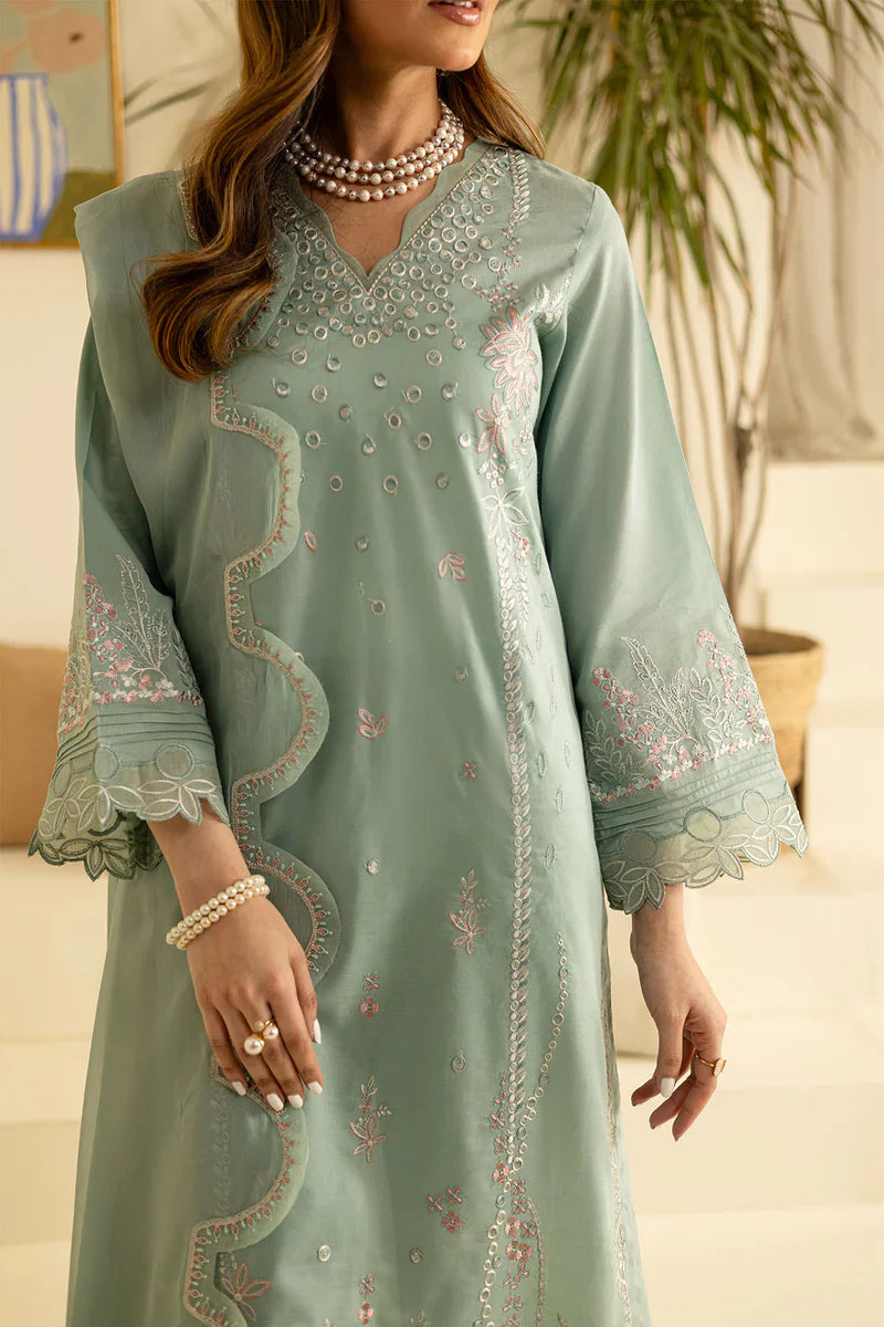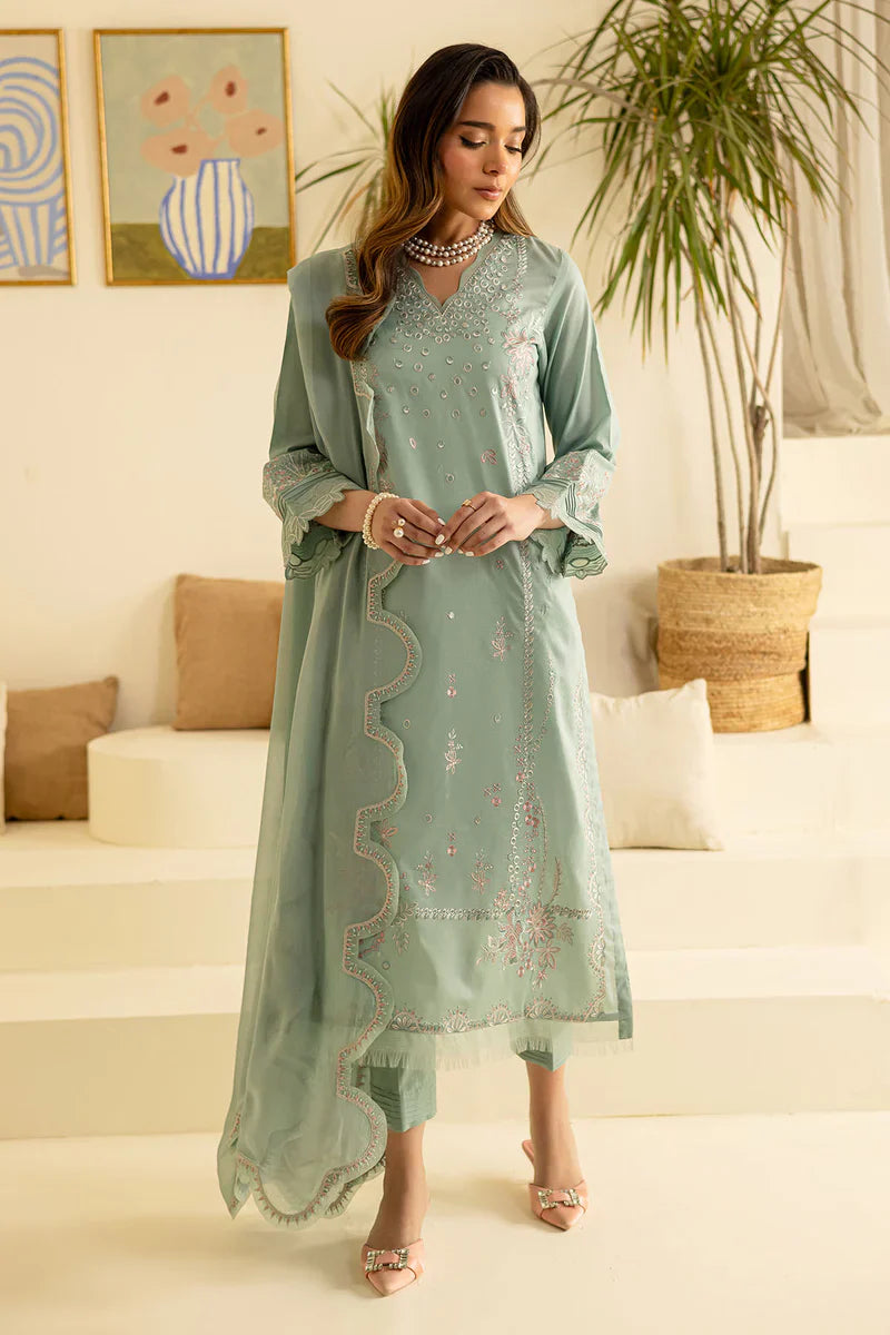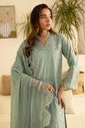- Embroidered Lawn Shirt Paired With Embroidered Chiffon Dupatta And Dyed Cotton Trouser