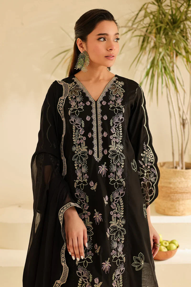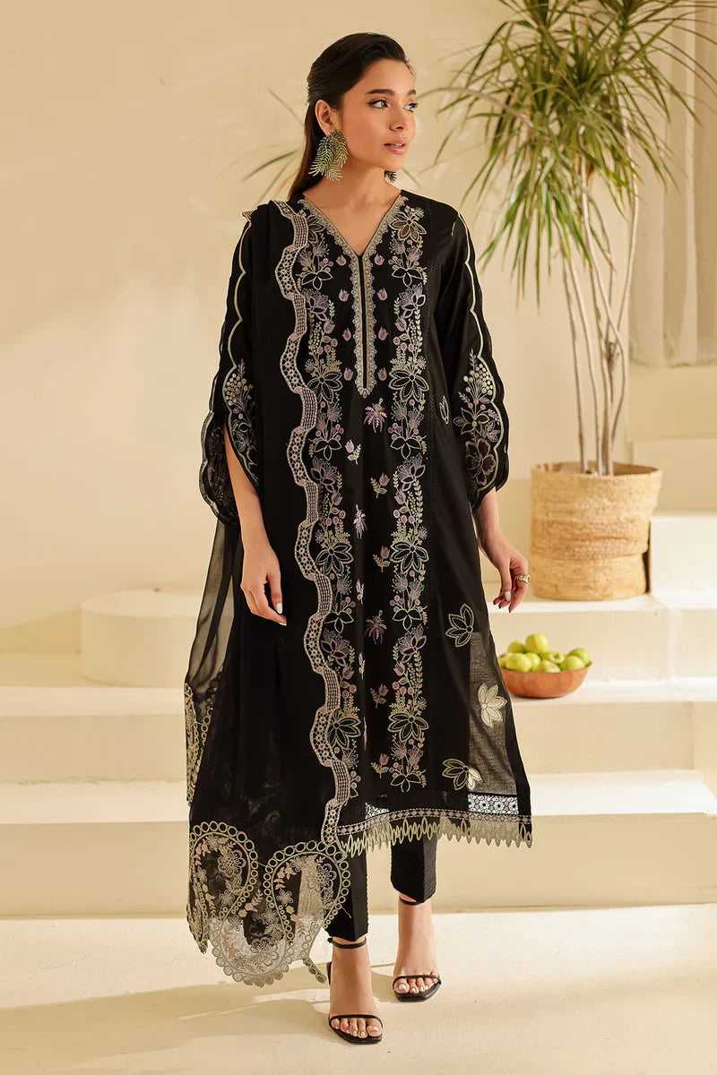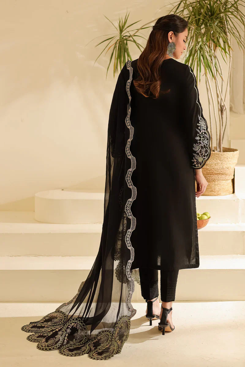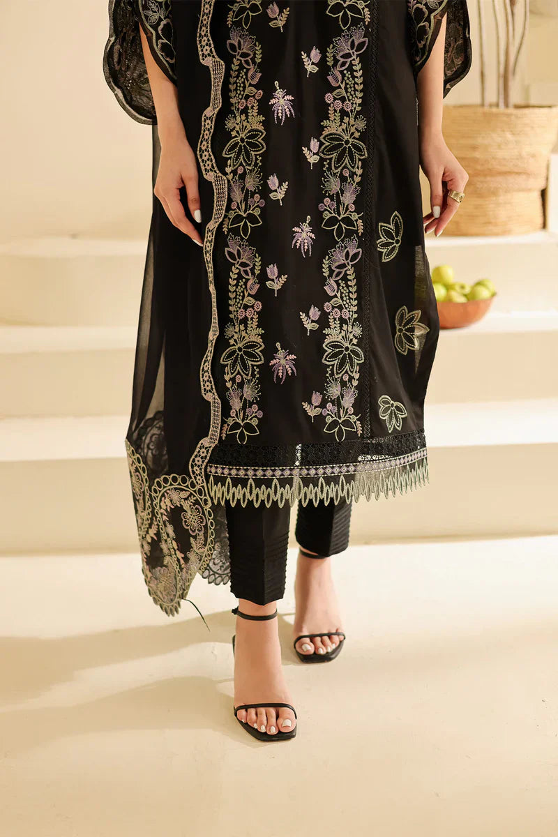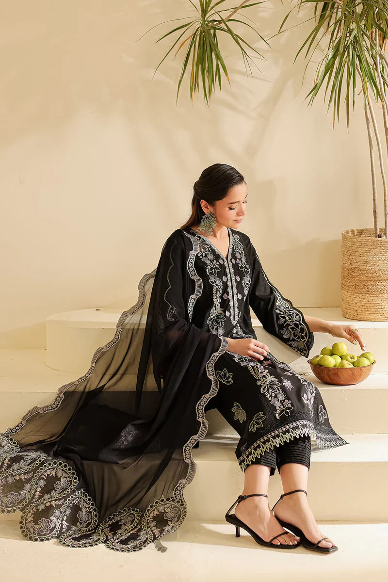 - Embroidered Laser Cut Lawn Shirt Paired With Embroidered Chiffon Dupatta And Dyed Cotton Trouser
