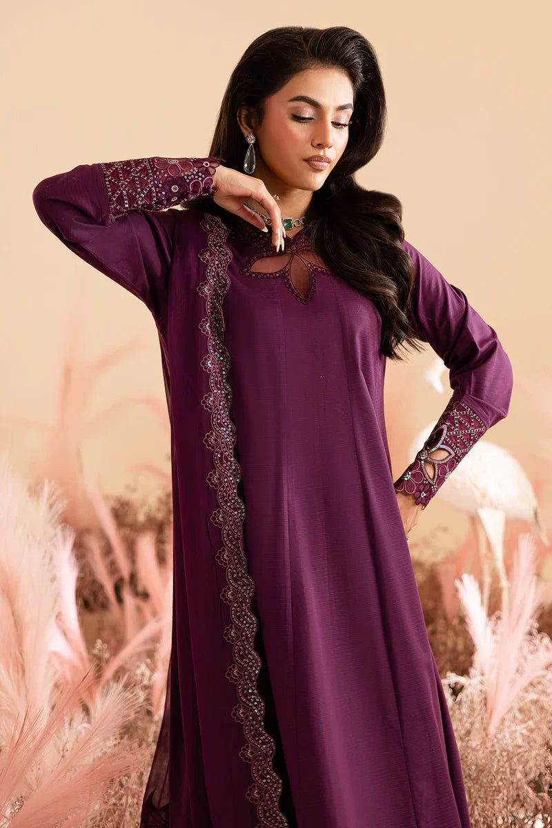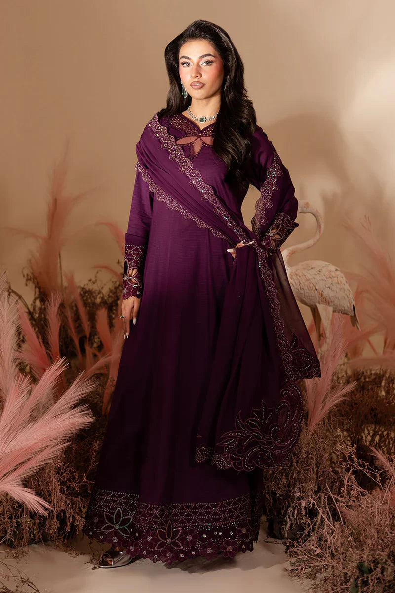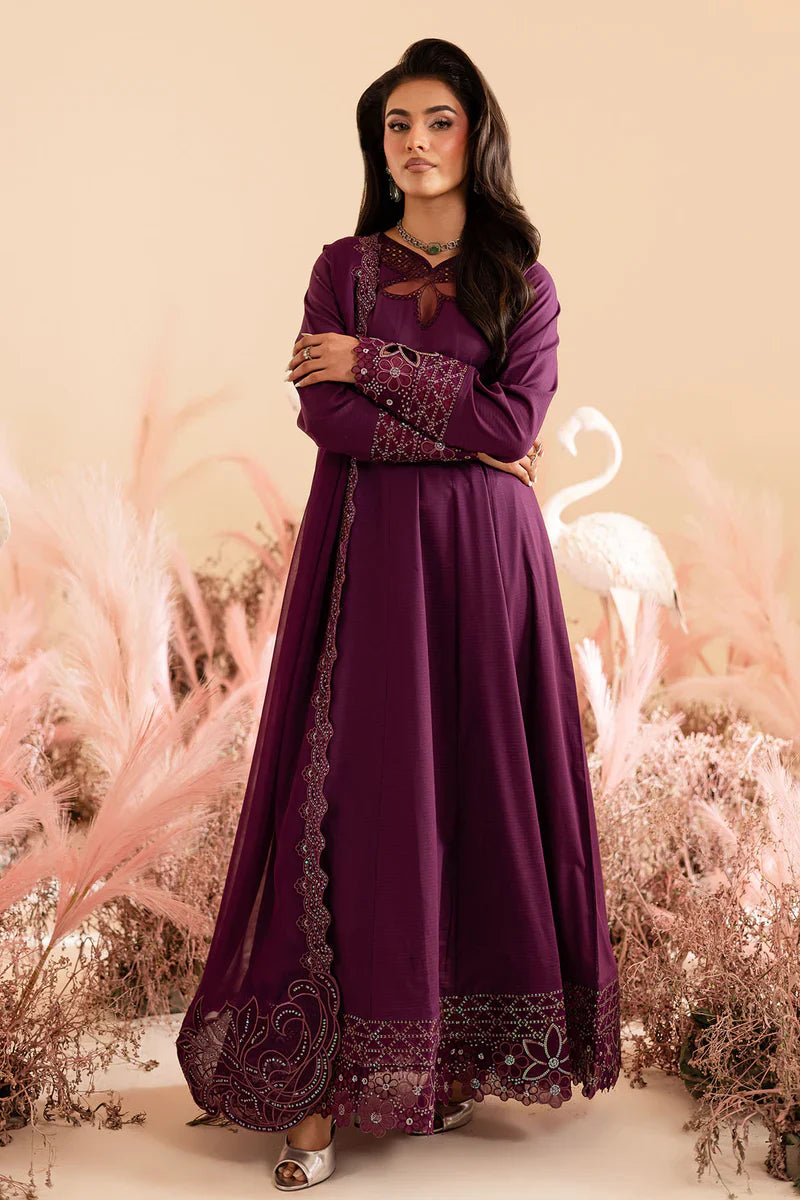 - Embroidered Lawn Doriya Frock Paired With Embroidered Chiffon Dupatta And Dyed Cotton Trouser