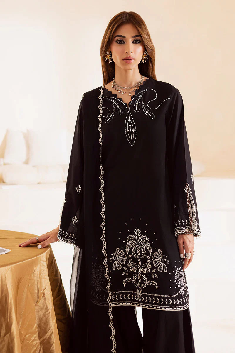 Embroidered Lawn Shirt Paired With Embroidered Chiffon Dupatta And Embroidered Farshi Shalwar