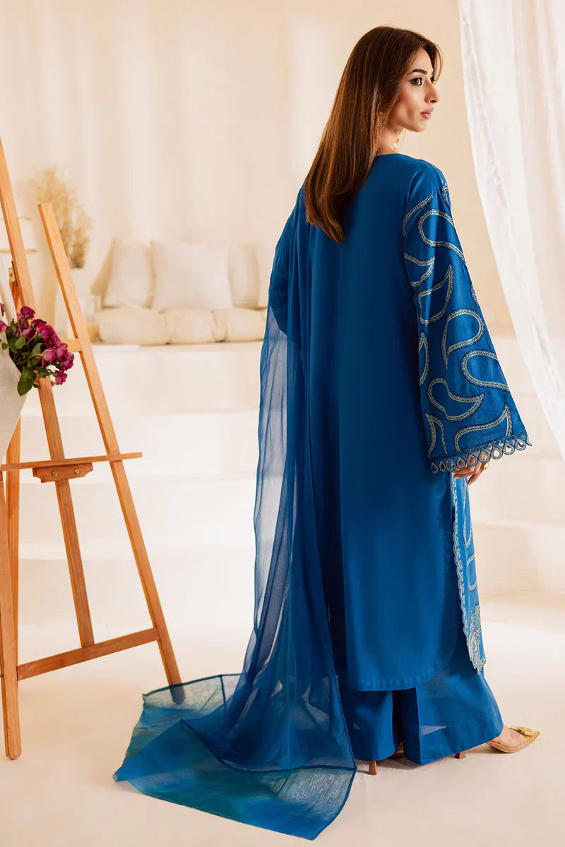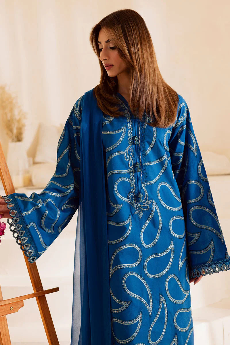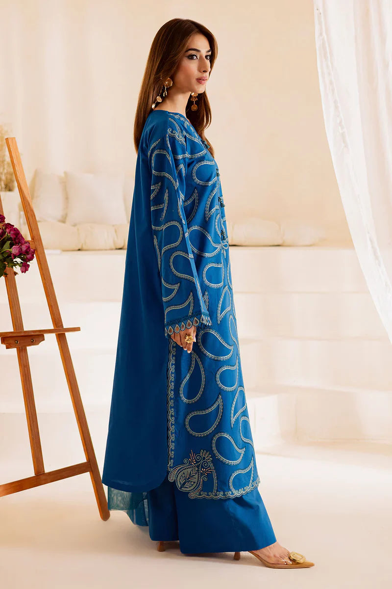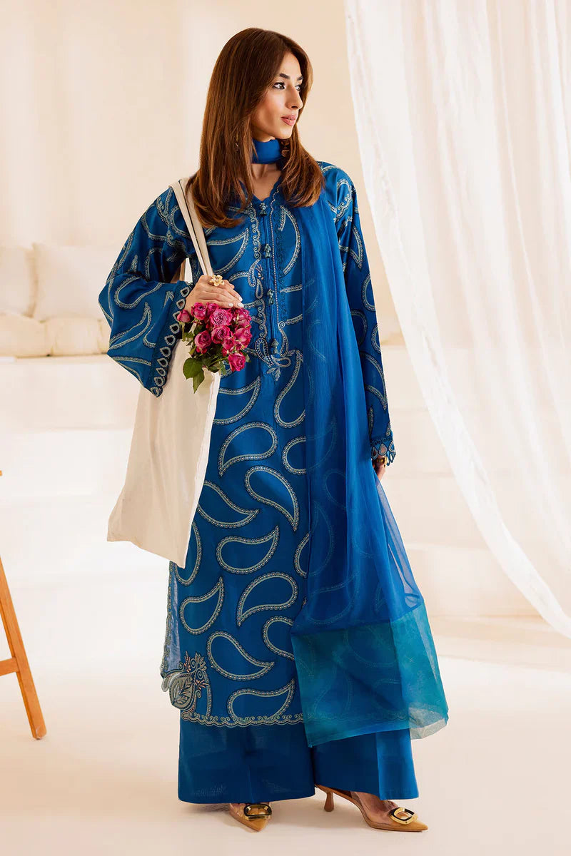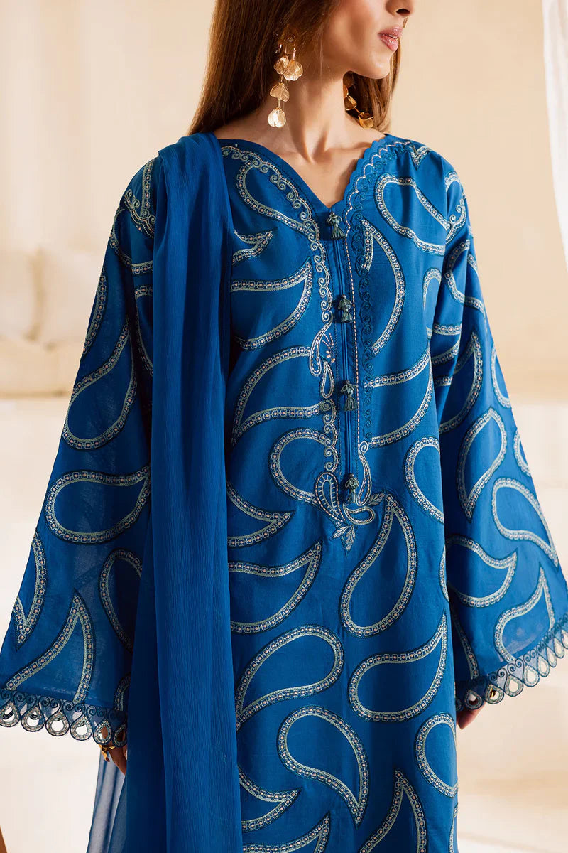 Embroidered Lawn Shirt Paired With Chiffon Dupatta And Dyed Cotton Trouser