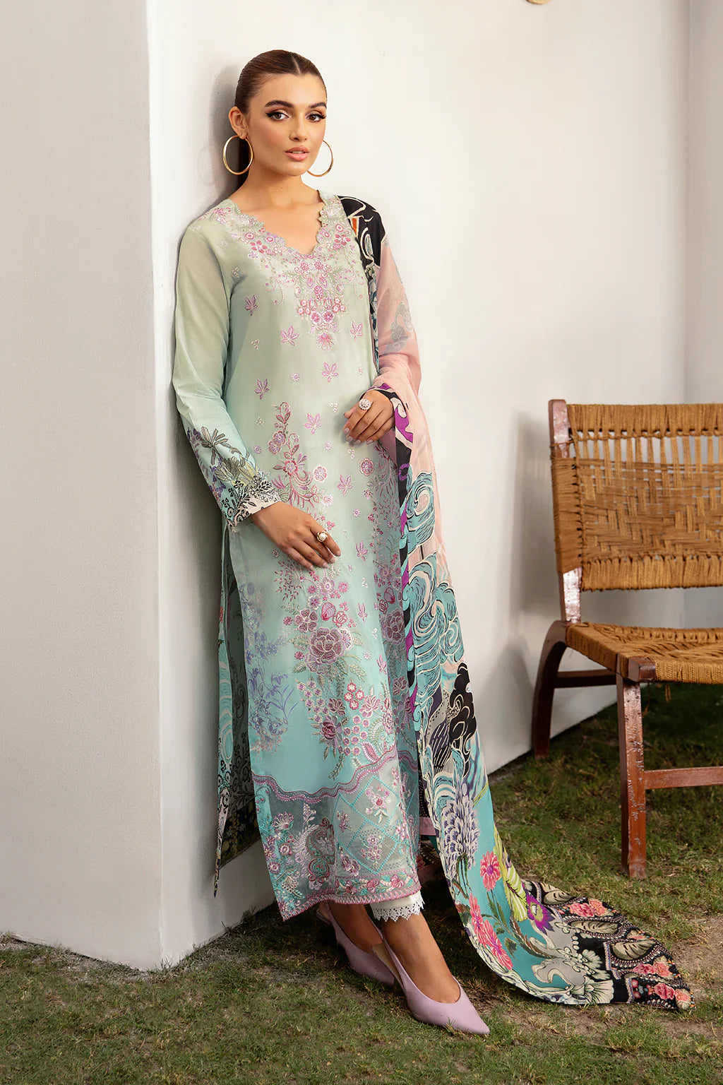 Embroidered lawn front