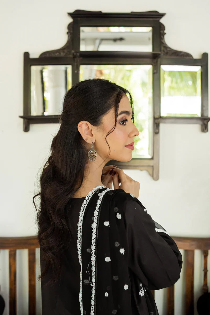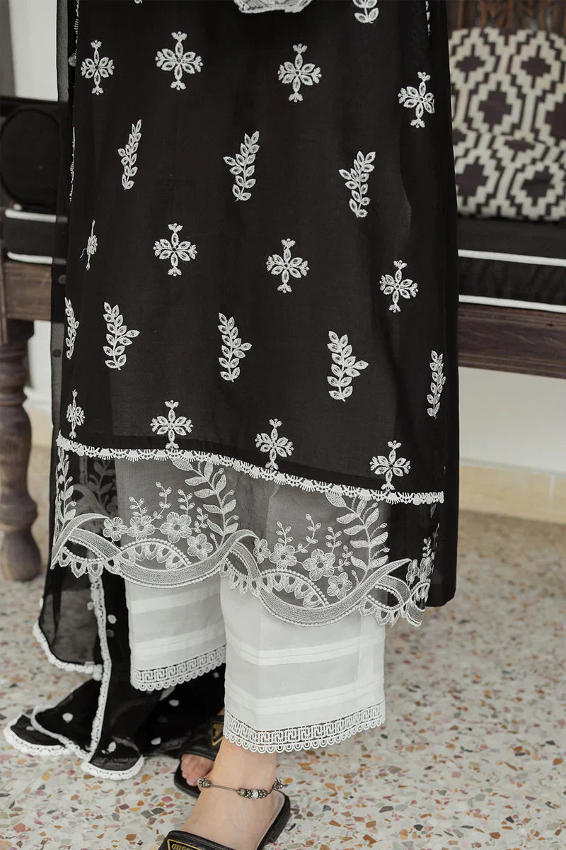 Shiffli embroidered lawn straight shirt with lace details, embroidered border on organza, and embroidered neckline.