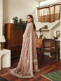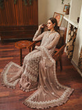 The chiffon ensemble features exquisite embroidered on the front, sleeves and borders. Exhibiting embroidered borders on the front and back paired with embroidered chiffon dupatta and a dyed inner and silk trouser to complete the dreamy look.