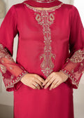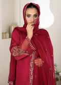 This exquisite silk ensemble features intricate Ada work and detailed embroidery on the neckline and sleeves, enhanced with additional Ada work and embroidery on the delicate organza fabric. The embroidered crinkle dupatta, with an all-over spray of embroidery, adds a graceful, textured touch. Paired with silk trousers, this outfit beautifully combines traditional craftsmanship with luxurious elegance, offering a refined and timeless appeal.