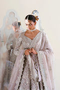 - ORGANZA PISHWAS WITH HALTER NECKLINE, LASER-CUT BOTANICAL EMBROIDERY, AND PEARL, GLASS, AND MIRROR EMBELLISHMENT